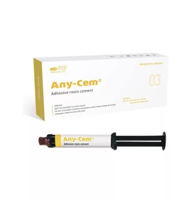Благодарение на двойното втвърдяване (химическо и фотополимерно), самоадхезивният дуал цимент Any Cem гарантира здравина дори в труднодостъпни зони. Формулата му е съвместима с циркониеви, метални, композитни и керамични конструкции.