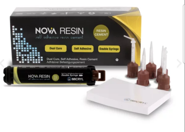 Самоадхезивен дуал цимент Nova Resin на Imicryl e иновативен композитен цимент, който предлага бързо, сигурно и ефективно решение при адхезивно циментиране. Този самоадхезивен дуал цимент комбинира фото и химическа полимеризация и не изисква допълнително ецване или бондване, спестявайки време и усилия.
